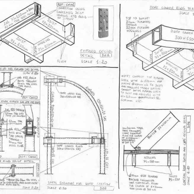 45m span tensile fabric roof with additional cable-net for sound proofing