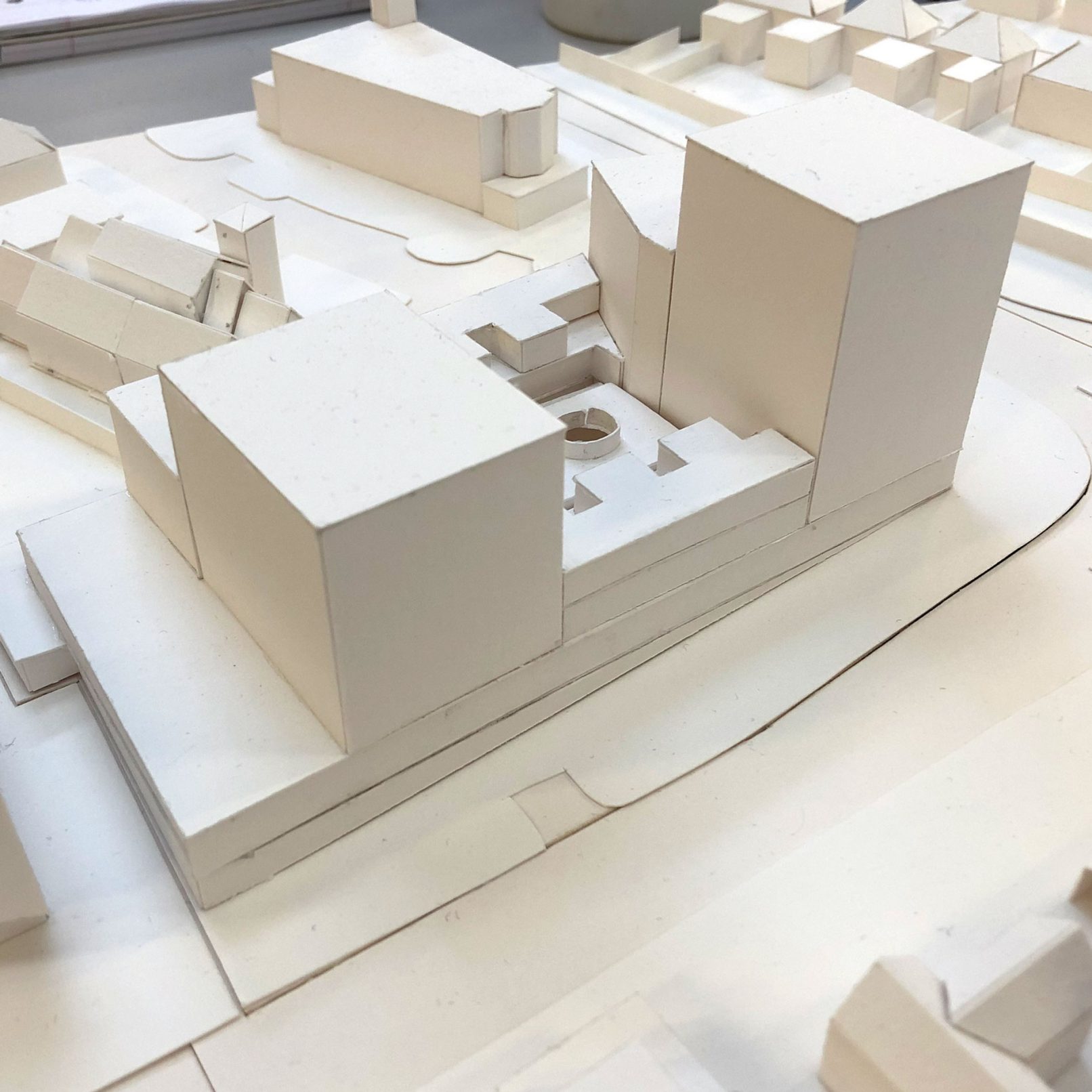 Economic and low-carbon structure using CLT (cross-laminated timber) structure for 10-storey mixed-use development – 8 storeys of affordable housing, above ground floor further education college, and lower ground office units and car park.